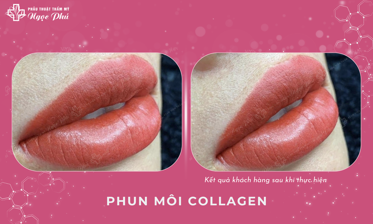 Phun môi được ủ tê vì thế bạn sẽ cảm thấy nhẹ nhàng khi thực hiện phun môi, collagen sẽ được thoa đều lên môi để kích thích sản sinh collagen, giúp môi lên màu như mong muốn, môi căng mọng tươi trẻ.
